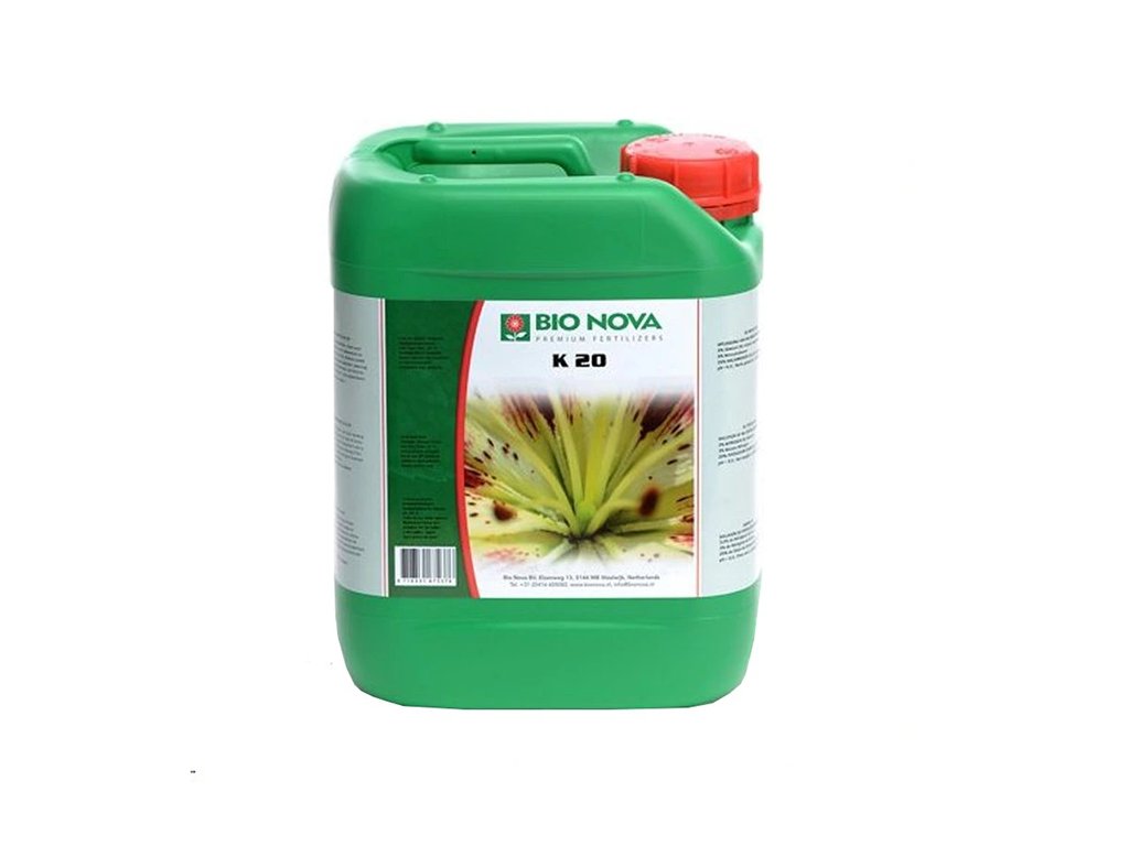 Bio Nova K 20 je koncentrované tekuté hnojivo s vysokým obsahem draslíku (K) určené pro podporu květu a dozrávání plodů. Draslík je nezbytný pro správné hospodaření s vodou v rostlině, pevnost pletiv a celkovou odolnost vůči stresu.